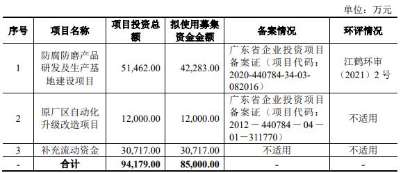 博盈特焊最终募集资金净额比原计划多57741.74万元。2023年7月14日,博盈特焊发布的首次公开发行股票并在创业板上市招股说明书显示,公司拟募集资金85,000.00万元,用于防腐防磨产品研发及生产基地建设项目、原厂区自动化升级改造项目、补充流动资金。