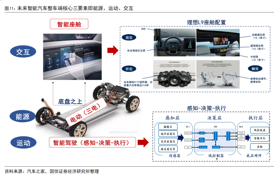 展望未来汽车,大致可以分为底盘之上及底盘之下,底盘之上是智能座舱下人机交互的实现场景,细分产业链为“芯片-系统-应用-显示”,屏幕、HUD、玻璃、车灯等均有望成为核心交互产品。底盘之下主要为智能电动和智能驾驶,智能电动集成三电系统,作为整车运动的核心能源支撑;智能驾驶主要是基于“传感器-计算平台-自动驾驶算法”作用到执行层面,实现横向和纵向的运动控制。总结而言,未来智能汽车整车端核心三要素即能源、运动、交互,豪恩汽电为聚焦运动端的汽车智能驾驶核心企业。