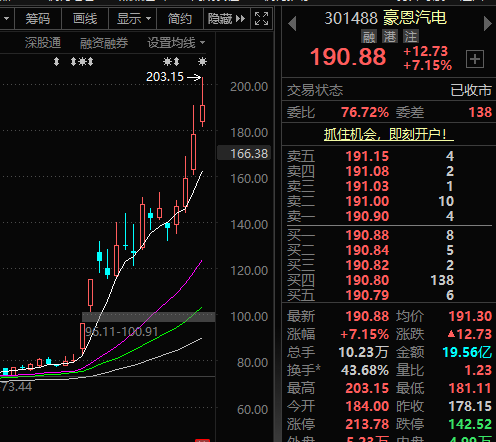 《每日经济新闻》记者注意到,豪恩汽电是近期A股市场的焦点个股,8月27日和28日,豪恩汽电连续两天“20cm”涨停,随后股价一直震荡上行。截至9月16日收盘,其股价在15个交易日累计上涨138.33%。