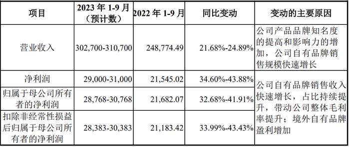 此外,乖宝宠物2023年1-9月(前三季度)的收入约为30.27亿元至31.07亿元,同比增长21.68%至24.89%;净利润2.9亿元至3.1亿元,34.60%至43.88%;扣非后净利润2.84亿元至3.04亿元,同比增长33.99%至43.43%。