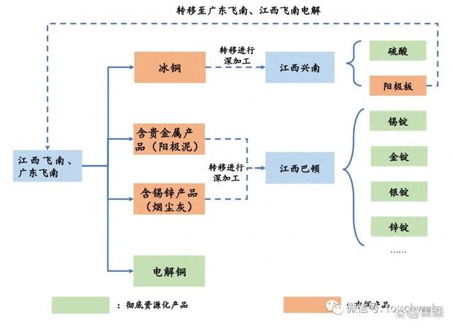 飞南资源的主营业务主要是以含铜污泥、含铜表面处理废物和废杂铜等多金属资源为主原料,经过火法和湿法工艺,最终提取纯度达99.95%以上的电解铜。同时,产出冰铜、铜阳极泥、锡阳极泥、镍泥等生产。