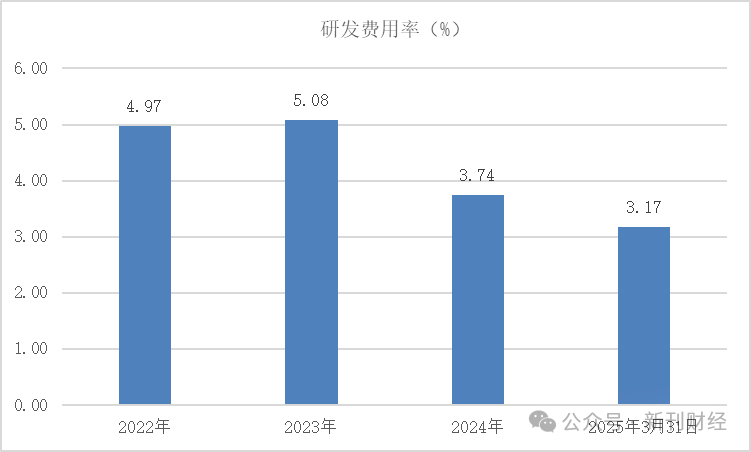 与此同时,公司研发投入持续走低。2024年研发费用为0.24亿元,同比下降18.87%,研发费用率为3.74%;2025年一季度研发费用进一步降至0.09亿元,同比下降16.06%,费用率降至3.17%。在销售和管理费用持续增长的背景下,公司在账面资金尚充足的情况下,公司研发支出却出现显著压缩,与其高层口中的“重视技术创新”形成明显反差。
