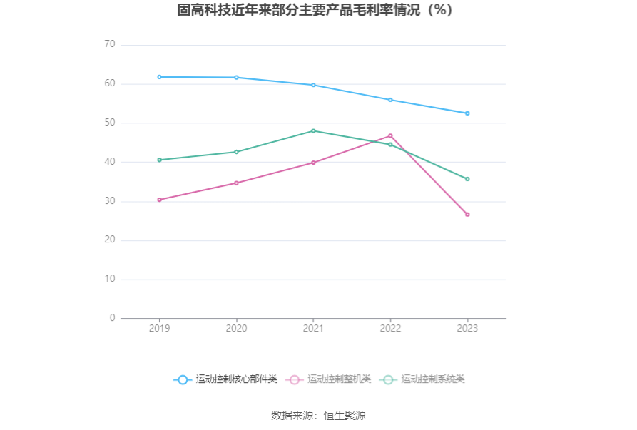 分产品看,运动控制核心部件类、运动控制整机类、运动控制系统类2023年毛利率分别为52.51%、26.63%、35.71%。