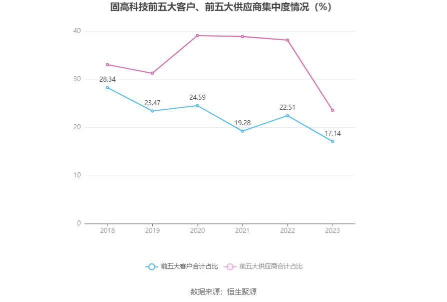 报告期内,公司前五大客户合计销售金额0.69亿元,占总销售金额比例为17.14%,公司前五名供应商合计采购金额0.46亿元,占年度采购总额比例为23.62%。
