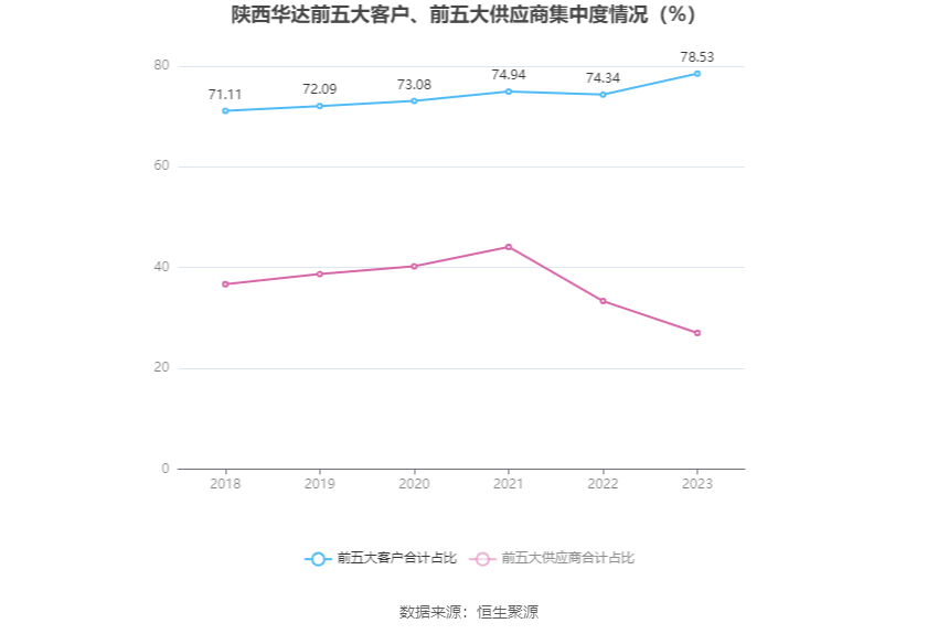 报告期内,公司前五大客户合计销售金额6.69亿元,占总销售金额比例为78.53%,公司前五名供应商合计采购金额0.83亿元,占年度采购总额比例为27.01%。