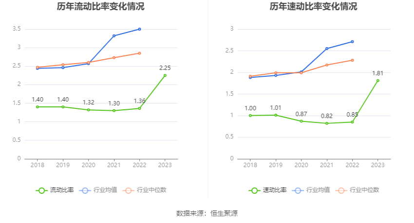 2023年,公司流动比率为2.25,速动比率为1.81。