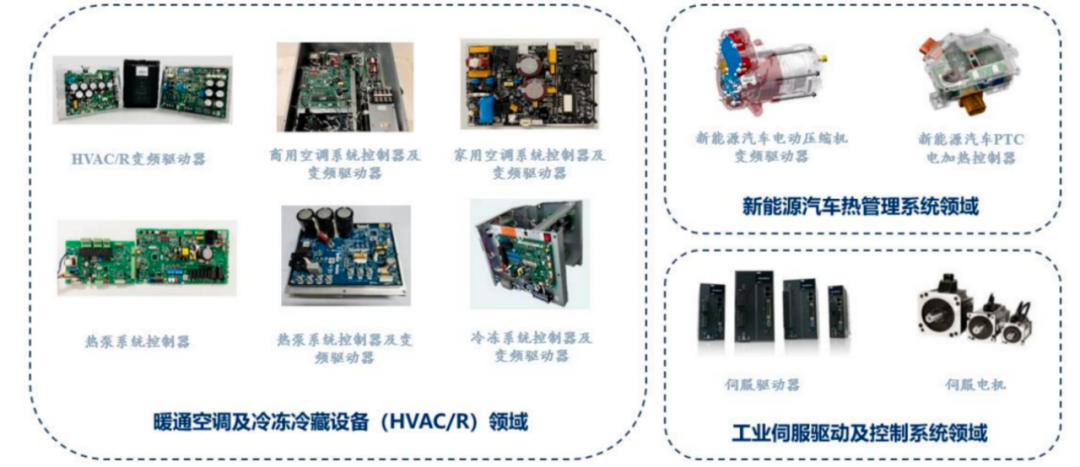 主要产品包括暖通空调及冷冻冷藏设备(HVAC/R)领域的变频驱动器及系统控制器、新能源汽车热管理系统领域的变频驱动器及控制器、工业伺服驱动及控制系统领域的伺服驱动器及伺服电机。HVAC/R领域为公司基石业务,其中商用空调和热泵细分领域的营收占比较高。