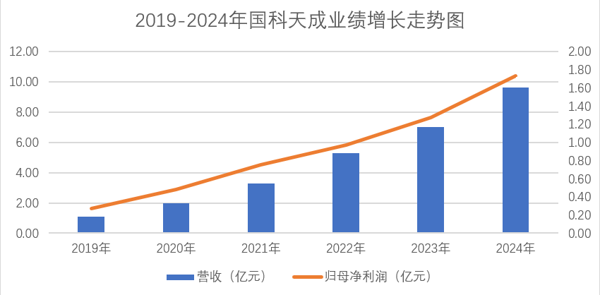 从2019年以来,国科天成的收入和净利润都出现节节攀升的良好形势。下图显示了走势,过去6年间,国科天成的营收复合增长率是53.7%;归母净利润的复合增长率是44.4%。