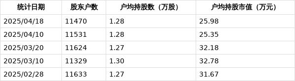 从4月22日公开信息显示,中瑞股份截至2025年4月18日公司股东户数为1.15万户,较上期(2025年4月10日)减少61户,降幅为0.53%,变化不大。