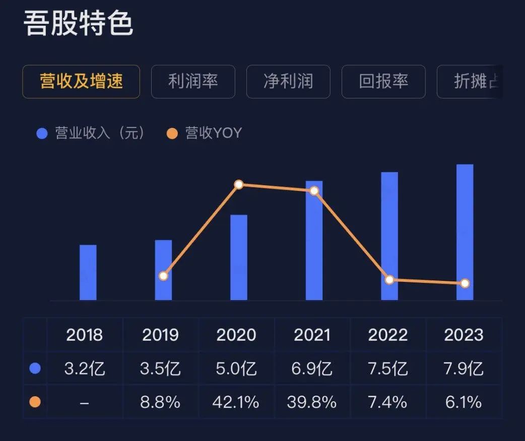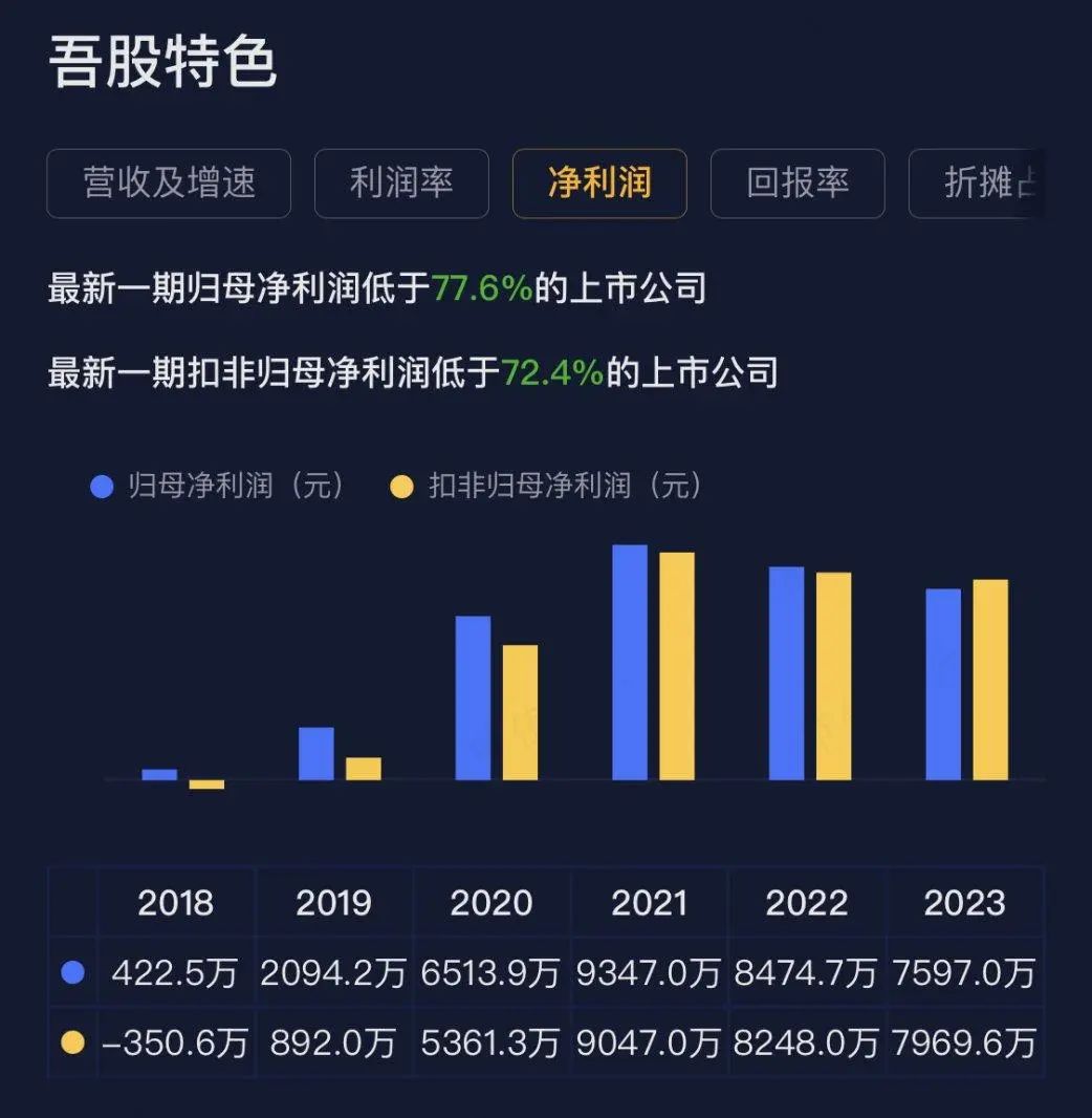 其利润也主要是依靠日常经营所得,考虑到最近两年的原材料采购价格增长、以及加大市场开拓,同比略有下滑,2023年的扣非归母净利润为7,969.6万元。