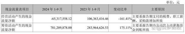 更不容乐观的是,诺瓦星云2024年前三季度经营活动产生的现金流量净额为-6531.76万元,较2023年同期的1.06亿元由正转负。该公司在财报中解释称,主要系报告期支付的税费、职工薪酬、采购款增加所致。