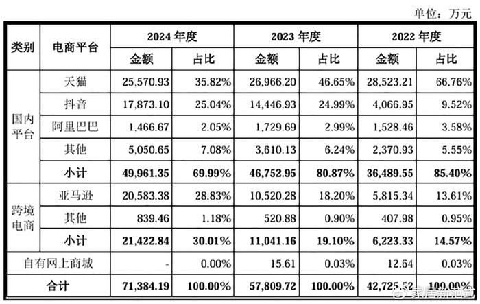 近几年来,太力科技营收增长迅速,很大程度得益于抖音电商和亚马逊销售增加。太力科技在2020年布局抖音电商,到2024年销售收入增长至1.79亿元;自2019年布局跨境电商业务,2024年亚马逊平台销售收入达到2.06亿元。