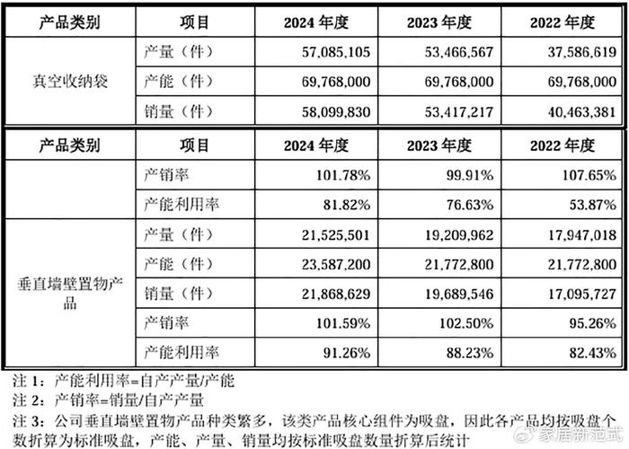 不过,从产能利用率来看,太力科技的主要产品产能利用率还有提升空间。2024年,真空收纳袋产能利用率为81.82%,垂直墙壁置物产品产能利用率为91.26%。