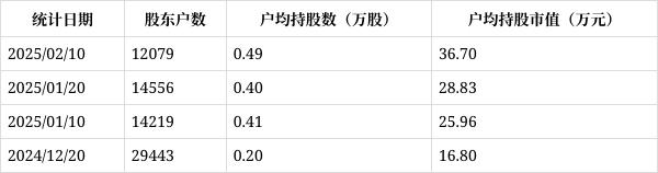 从2月20日公开信息显示,博科测试截至2025年2月10日公司股东户数为1.21万户,较上期(2025年1月20日)减少2477户,降幅为17.02%,持股趋于集中。