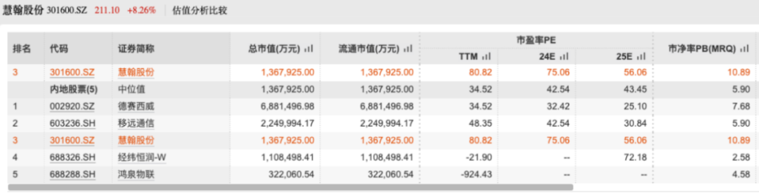 截止3月14日收盘,慧翰股份80.82倍动态市盈率已远高于德赛西威、移远通信的34.52倍和48.35倍,估值略显畸高,加上其客户集中度过高、技术护城河薄弱、外部政策不确定性等结构性风险等考虑,此刻一些资金涌入是看中公司基本面增长潜力,还是借用热度与散户资金进行短期博弈获利,或许已经不难分辨了。