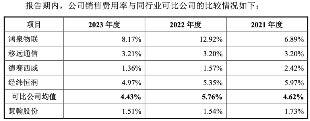与此同时,市场竞争态势的加剧,还将进一步蚕食公司并不高的毛利率水平,以及慧翰股份此前过低的各项费用率向可比公司均值靠拢,也将大幅缩减公司盈利水平。