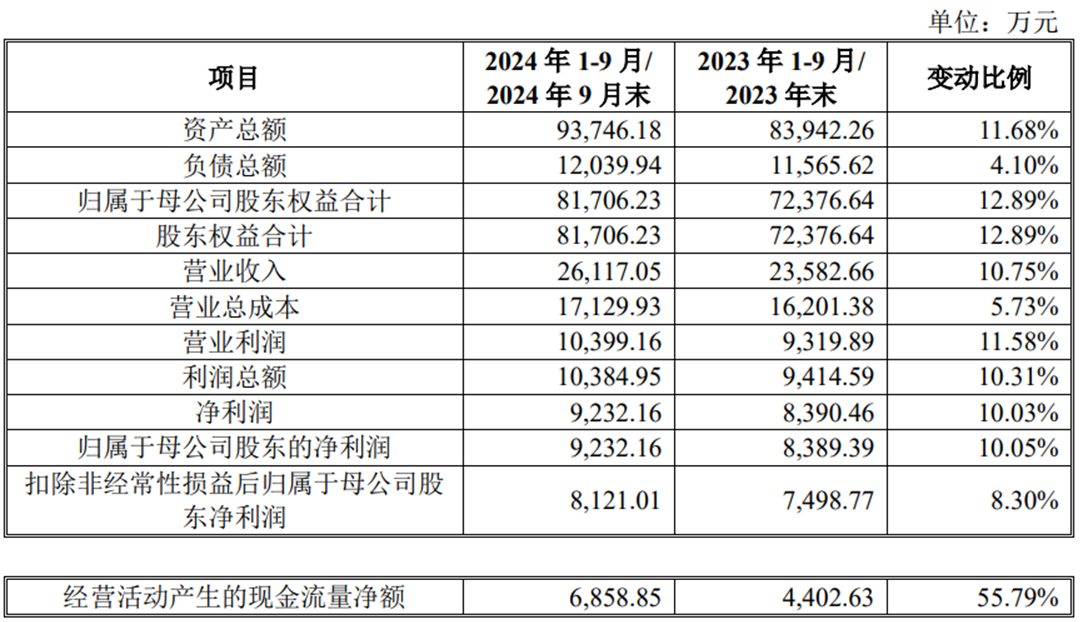 2024年1-9月,超研股份实现营业收入26,117.05万元,同比增长10.75%;实现净利润9,232.16万元,同比增长10.03%;实现归属于母公司股东的净利润9,232.16万元,同比增长10.05%;扣除非经常性损益后归属于母公司股东的净利润8,121.01万元,同比增长8.30%;经营活动产生的现金流量净额6,858.85万元,同比增长55.79%。