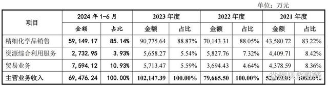 最后是为客户出售精碘、碘化钾等精细化学品的贸易业务,所占总营收的比重在不断加强,截至2024年6月末,该业务取得的营收0.76亿元,占比10.93%,已经超过了资源综合利用服务。