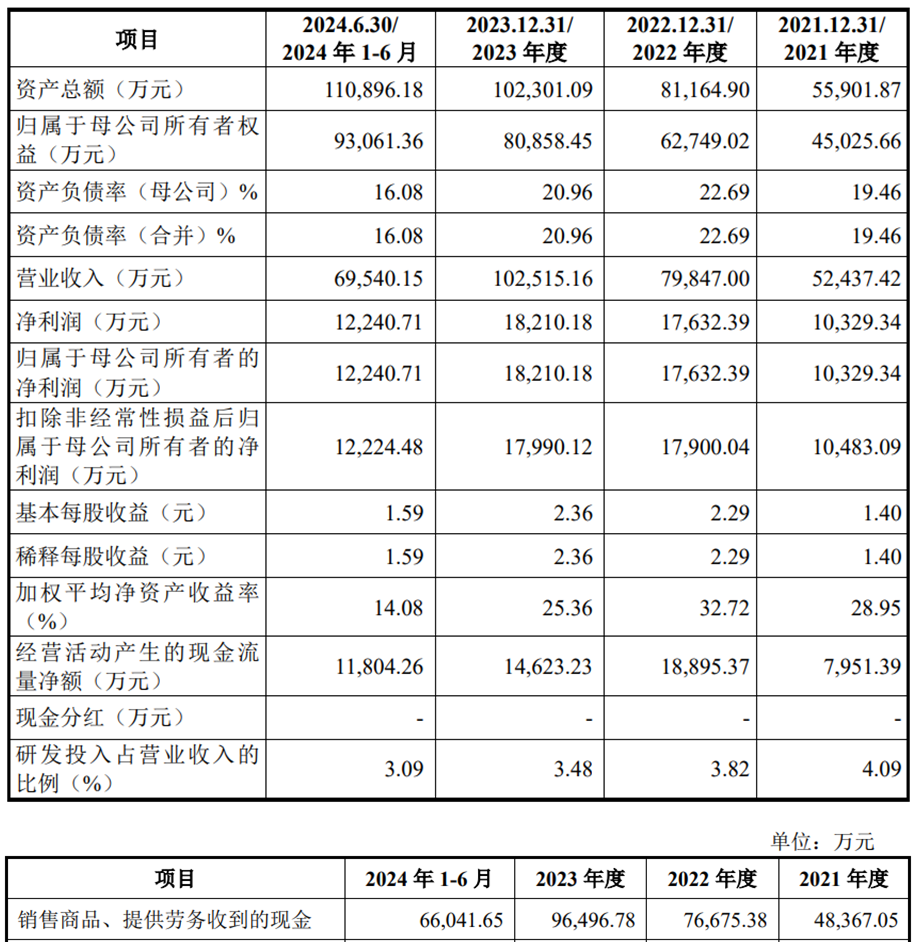 上述同期,公司销售商品、提供劳务收到的现金分别为48,367.05万元、76,675.38万元、96,496.78万元和66,041.65万元;经营活动产生的现金流量净额分别为7,951.39万元、18,895.37万元、14,623.23万元和11,804.26万元。