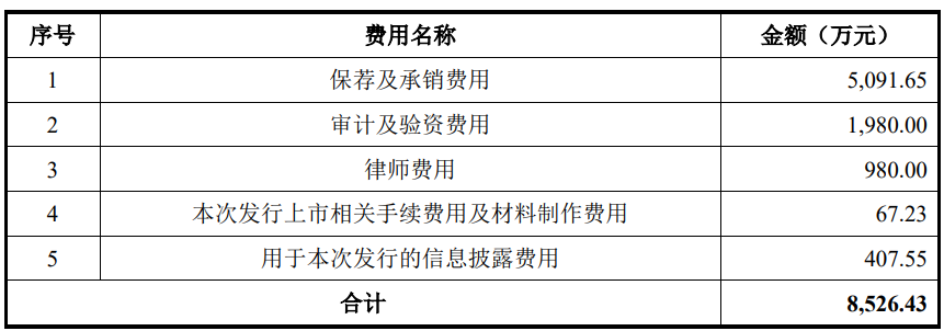 博苑股份发行费用合计8,526.43万元,其中保荐及承销费用5,091.65万元。