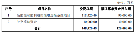 中国经济网北京1月6日讯壹连科技(301631.SZ)昨晚披露的向不特定对象发行可转换公司债券预案显示,本次向不特定对象发行可转换公司债券募集资金总额预计不超过120,000.00万元(含本数),扣除发行费用后的募集资金净额拟投资于以下项目:新能源智能制造柔性电连接系统项目和补充流动资金。