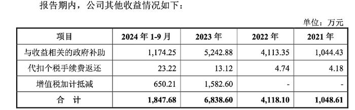 另一方面,宏工科技也在拿着金额不小的政府补助。2021年-2023年,宏工科技与收益相关的政府补助金额分别为1,044.43万元、4,113.35万元和5,242.88万元。