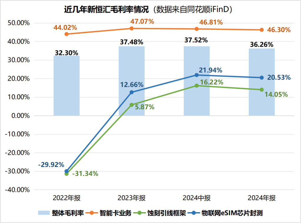 2025年上半年,新恒汇凸显出传统业务增长乏力的态势。占收入主体59.74%的智能卡业务几乎停滞,仅微增0.02%。