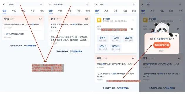 与上届评测时相比,搜索互动增加了快捷交易卡片,但即便升级后的14.0版也依然存在以下问题:一是,“一键锁卡”等个别功能点搜不出结果;二是,对活动的搜索仍待提升,主推的一些活动搜不到活动页面;三是,代销理财产品的搜索结果建议增加代销机构,一些过期资讯也可及时清理。
