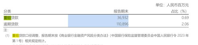 此外,透过2024年年报,我们观察到浦发银行的重组贷款增长明显。2024年末,浦发银行的重组贷款为369.32亿元,而2023年末只有8.64亿元。2024年比2023年增长360多亿,占比也从2023年的0.02%上升至0.69%。