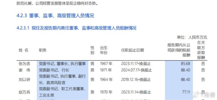 然而,率领浦发团队取得彪炳业绩的张为忠却不居功,甘愿领着较低的薪水。根据2024年年报,张为忠2024年的薪酬基为85.68万元,低于担任行长的谢伟和副行长的刘以研,仅高于党委副书记赵万兵。