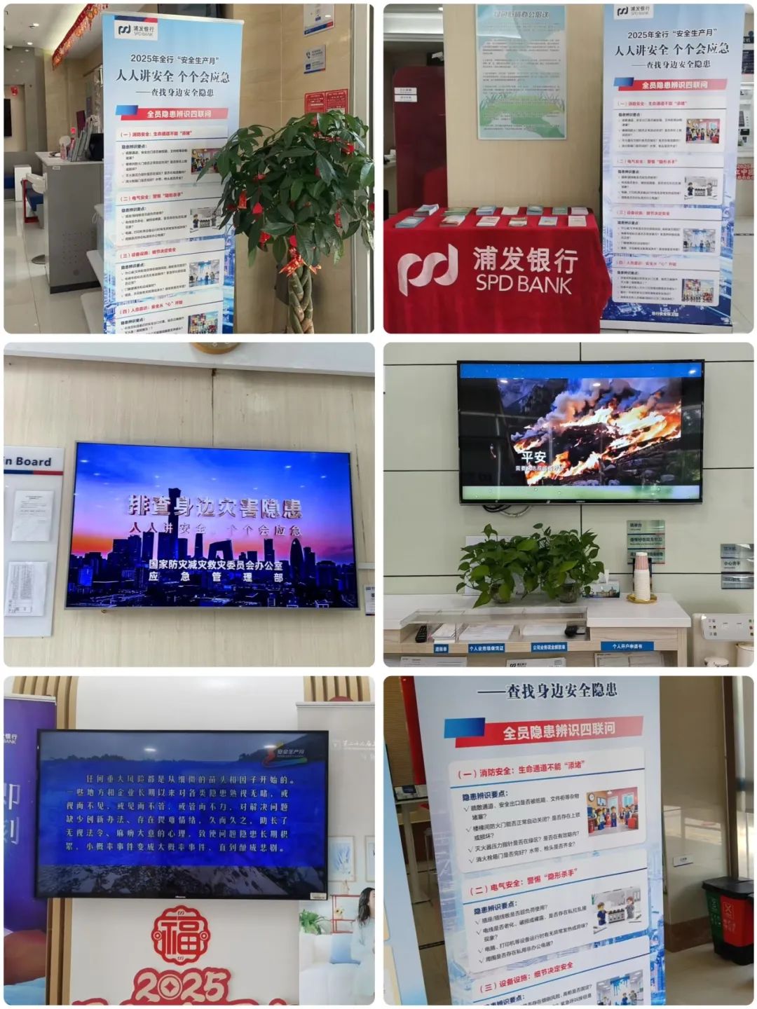 浦发银行积极构建“线上+线下”立体宣传网络,广泛利用宣传栏、电子屏与内部平台,滚动播放主题海报、警示教育片,推动安全知识与应急技能深入人心,将安全隐患辨识要点融入日常工作。