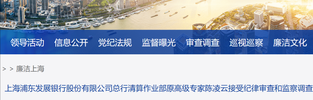 2025年7月下旬,上海市纪委监委驻浦发银行纪检监察组与宝山区纪委监委联合通报:总行清算作业部原高级专家陈凌云涉嫌严重违纪违法,正接受纪律审查和监察调查。