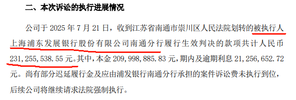 2024年12月31日,南通市崇川区法院作出一审判决:浦发银行南通分行全责赔偿,需向科远智慧支付2.95亿元存款本金及利息。
