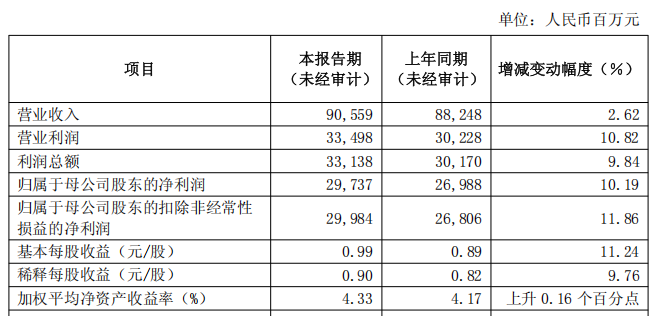 我们先来看最直观的财务数据。今年上半年,浦发银行的营业收入达到905多亿,同比增长了2.62%。这个数字,可以说是在当前宏观环境下,保持了业务的稳定扩张。但真正有意思的,是利润端的表现。它的营业利润和利润总额,增速都接近甚至超过了10%,归母净利润增长了10.19%。如果再把一些非经常性的损益给去掉,这个数字还能更高,达到11.86%。