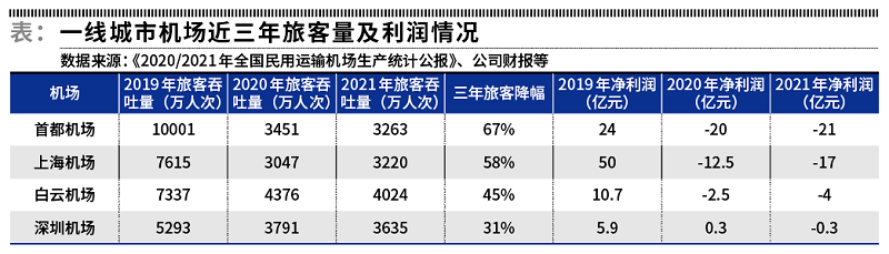 近三年受新冠疫情影响,国内主要机场旅客吞吐量大幅下降,导致产能利用率不足,尤其是国际旅客断崖式下滑,北上广深四大一线城市机场均陷入连续两年亏损。作为老牌上市公司,白云机场(600004.SH)上市20年来,一贯以优质公共基础设施稳定盈利而著称,2000至2019年的20年间,白云机场利润稳定增长5.5倍,期间无一年亏损,2019年盈利达到10.7亿元。疫情出现后,2020年亏损2.5亿元,2021年亏损进一步扩大至4亿元。疫情对航空业短期影响极大,2022年一季报,白云机场仍然亏损8000多万元,可能会出现连续三年年报亏损。