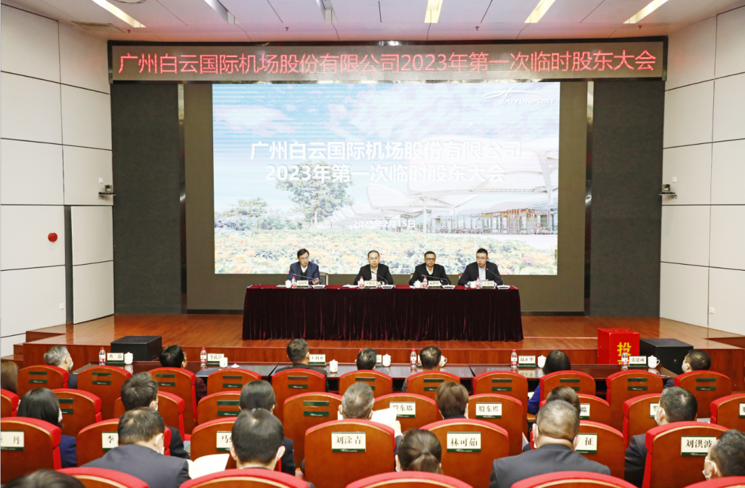 冬去春来,万物复苏。2月15日下午,广州白云国际机场股份有限公司2023年第一次临时股东大会顺利召开,公司党委书记、董事长、总经理王晓勇主持会议,各位董事、监事、高级管理人员、股东及股东授权代表参加了本次大会。出席本次会议的股东及股东授权代表共有48人,共代表公司有表决权的股份数1,431,217,786股,约占公司股份总数的60.47%。