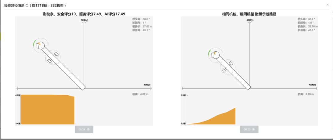 自主研发“云桥综合设备管理系统”,集成登机桥及桥载设备运行状态实时监测、故障实时分析及报警、登机桥操作员AI安全评分及操作路径分析等功能,特别是针对登机桥靠接操作视野盲区,在全部登机桥加装高清视频摄像机和超声波测量传感器,有效拓展了登机桥操作员视角和空间距离评估手段。同时,建立了登机桥操作路径AI分析模块,通过对登机桥操作数据的采集和分析,综合登机桥操作员的行为习惯和机位、机型特点,将数据化点为线,形成靠接航空器的最优路径,帮助识别、发现和提升登机桥操作技术短板,防止航空器碰撞事件发生。