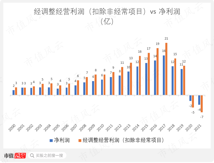 扣除非经常项目的经调整经营利润和净利润的结果也因此变得尴尬,自然也是到了横坐标下方。