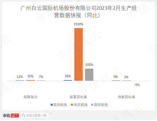 根据白云机场生产经营数据快报,国内、地区和国际航线的旅客吞吐量均呈现井喷式增长,尤其是地区航线和国际航线,同比分别增长了2,319%和535%。