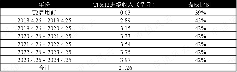 详细说,白云机场从经营权转让中获得的收入,是保底提成和实际销售提成两者之间,选更高的金额。提成比例是进境免税42%,出境免税35%。