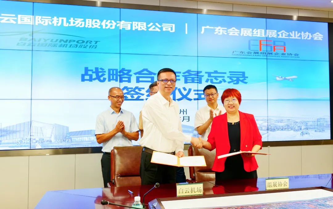 8月30日上午,广州白云国际机场股份有限公司(以下简称“白云机场”)与广东会展组展企业协会(以下简称“组展协会”)战略合作备忘录签约仪式在白云机场举行。白云机场副总经理戚耀明、组展协会会长刘松萍先后致辞并共同签署了《广州白云国际机场与广东会展组展企业协会战略合作备忘录》,广东省商务厅、广州空港委、花都空港委相关领导、航空公司及组展企业代表共同见证了此次签约仪式。