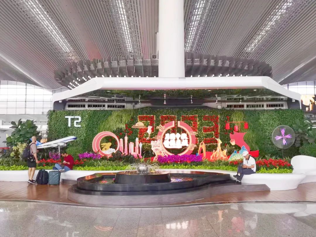 “圆月”“玉兔”“花好月圆”“欢度国庆”等节日IP搭配鲜花绿植,营造浓厚的节日氛围。即日起至10月15日,白云机场航站楼举办“品味中秋喜迎国庆”主题系列文化活动,邀请广大旅客和市民参与品味广式月饼、猜灯谜、画脸绘、赏古筝、赢礼品等,让旅客在白云机场留下独特的出行体验。