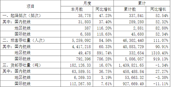 白云机场10月9日公告,前9月旅客吞吐量合计4630.24万人次,同比增111.07%。