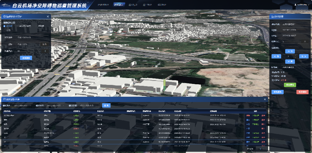 构建精准地理信息底座。系统通过卫星遥感技术,对1200平方公里净空区进行全方位扫描与三维建模,并融合净空一体化图数据,建立了高精度的地理信息底图,为巡查工作提供了可靠的空间数据支撑。