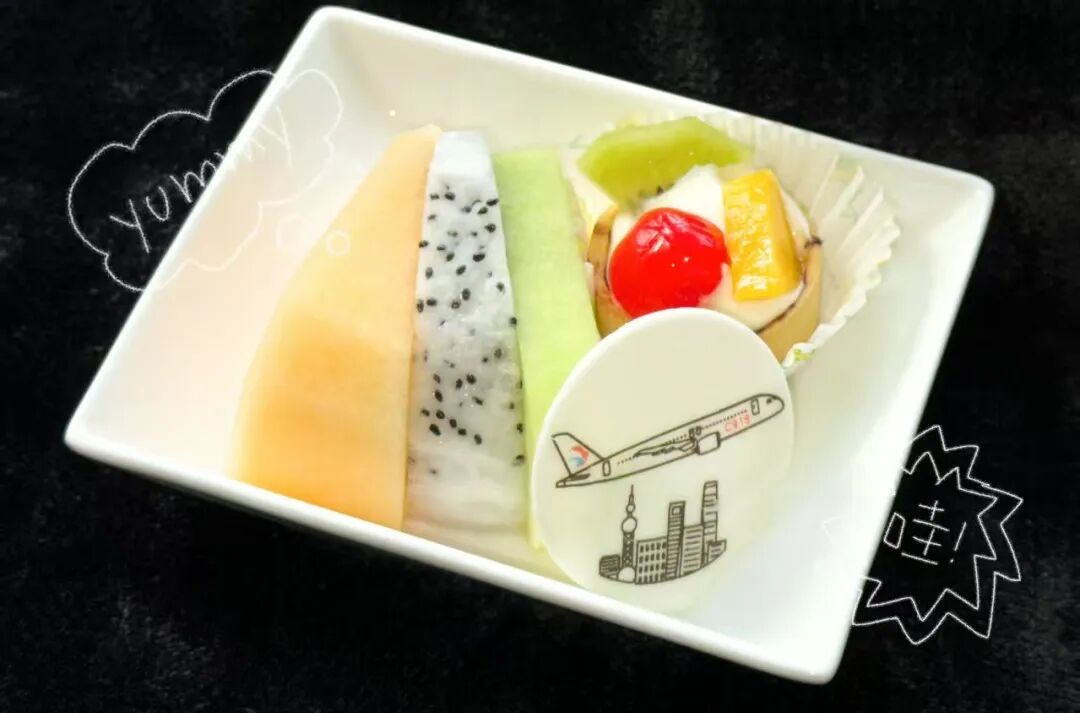 首航航班由C919飞机执飞,餐食的“仪式感彩蛋”惊艳全场!当印有“东方风来,翼起翱翔”的主题蛋糕推上机舱,瞬间点燃旅客热情,象征C919腾飞梦想的字样与航班主题完美呼应。两舱旅客专属的冷荤水果拼盘上,C919机型巧克力牌成为点睛之笔,让每一口美味都承载着首航的独特意义,引得旅客纷纷拍照留念。