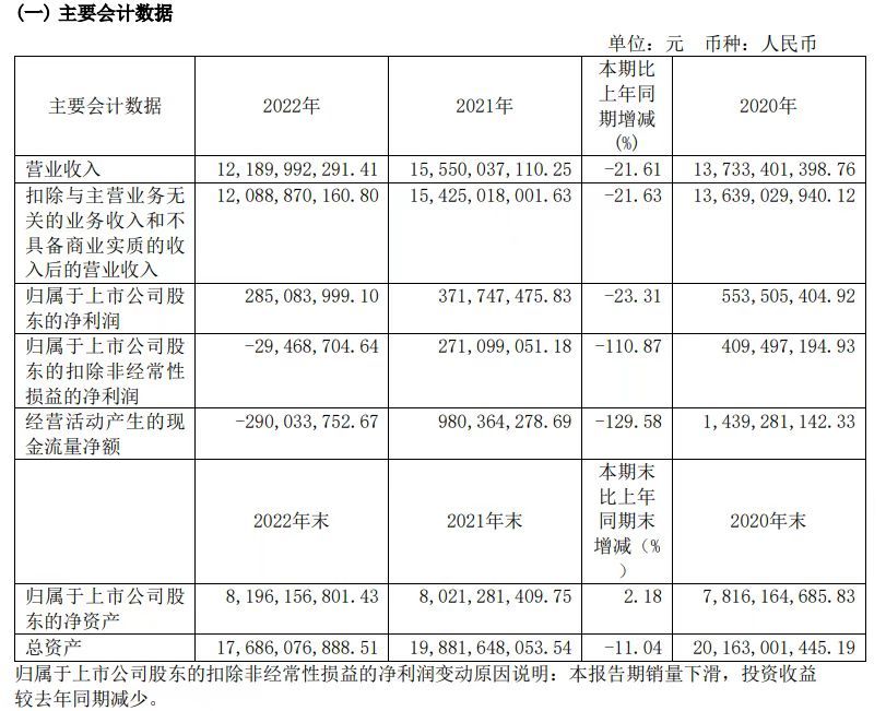 记者日前从官方获悉,东风汽车股份有限公司(以下简称“东风汽车”)近日发布了2022年年度报告。报告显示,2022年东风汽车实现年营业总收入121.90亿元,同比下降21.61%,实现归属于上市公司股东的净利润2.85亿元,同比下降23.31%。归属于上市公司股东的扣除非经常性损益的净亏损0.29亿元,同比下降110.87%。此外,基本每股收益0.1425元。