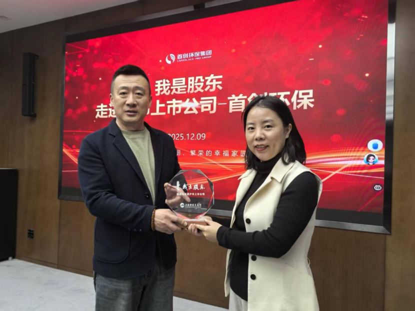 在座谈会上,首创环保董秘官念为活动致欢迎辞,华鑫证券北京分公司总经理邹培杰向首创环保赠送了上交所“我是股东”水晶纪念碑。在座谈会上由董秘官念介绍公司历史及发展历程;投资者关系部高级经理杨东泽介绍核心板块、技术产品,项目现场应用案例等,针对技术落地的市场前景进行补充说明;随后由投资者关系部高级经理吕国成主持互动问答环节,回答了 20 多位中小股东提出的个性化问题,同时解答投资者预征集及实时提问。最后,投资者参观了首创环保展览厅。