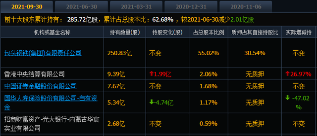 因此,那些专业的机构投资者早早地察觉到端倪,从包钢股份的十大股东累计持有股数就能窥知一二。最近三个披露期的十大股东累计持有股数为292.82亿股、287.73亿股、285.72亿股,持续减少。显然有机构在包钢股份冲高的过程中,选择了获利了结。