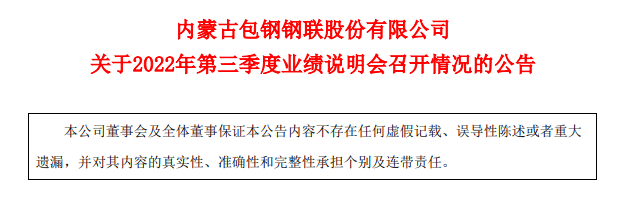 11月9日,内蒙古包钢钢联股份有限公司召开了2022年第三季度业绩说明会,公司董事长刘振刚先生等人参加了在线互动交流。