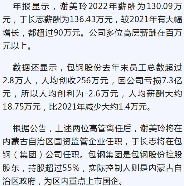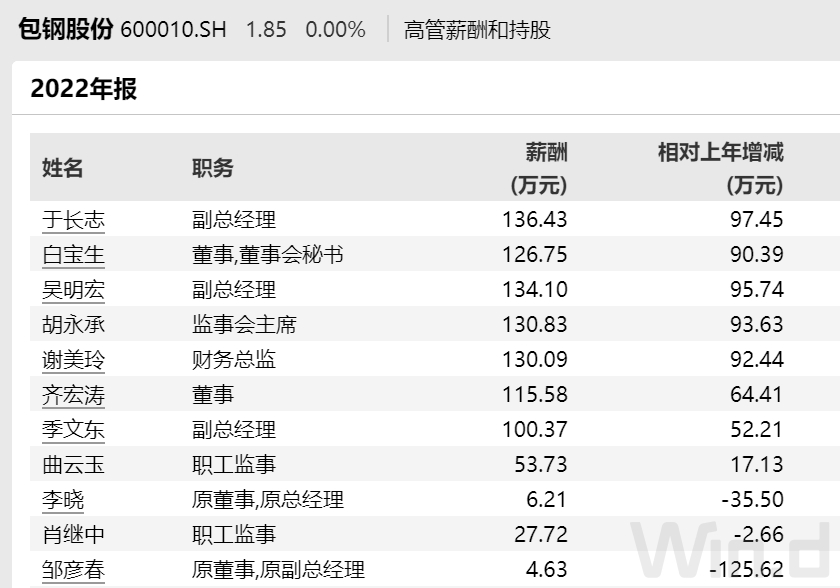 840亿包钢股份:因工作调整,两位年薪百万高管离任